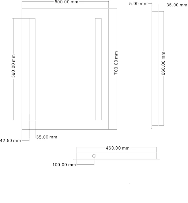 Theyโre available in two different sizes (390 x 500mm & 500 x 700mm) and can be hung in either a portrait or a landscape orientation. Each mirror has two strips of light that run along the longer edges of the mirrors. These are powered bright LEDs, 48 on the smaller and 72 on the larger mirror.