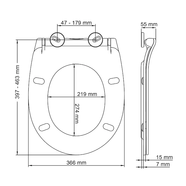 The stainless steel adjustable hinges provide a stylish accent for your bathroom whilst also featuring the ability to adjust accordingly for a snug fit to the pan.