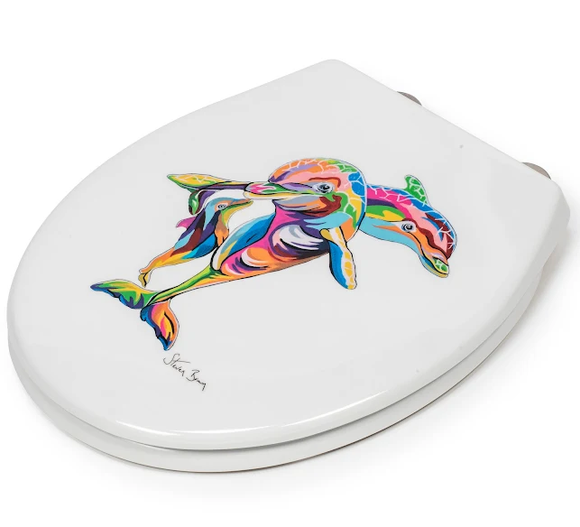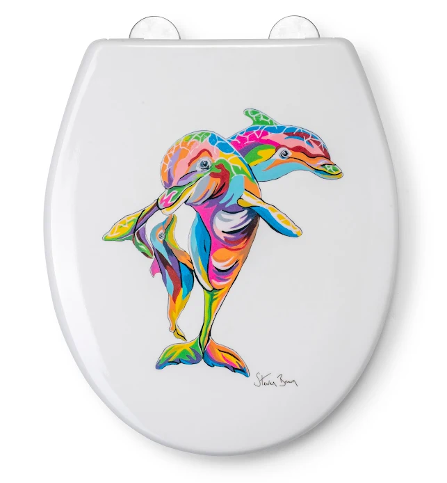 Are you looking to add some to colour to your bathroom or create a truly unique design? If you are, then why not consider this wonderfully bright and colourful Hannah McWave Dolphin toilet seat designed by talented artist Steven Brown.