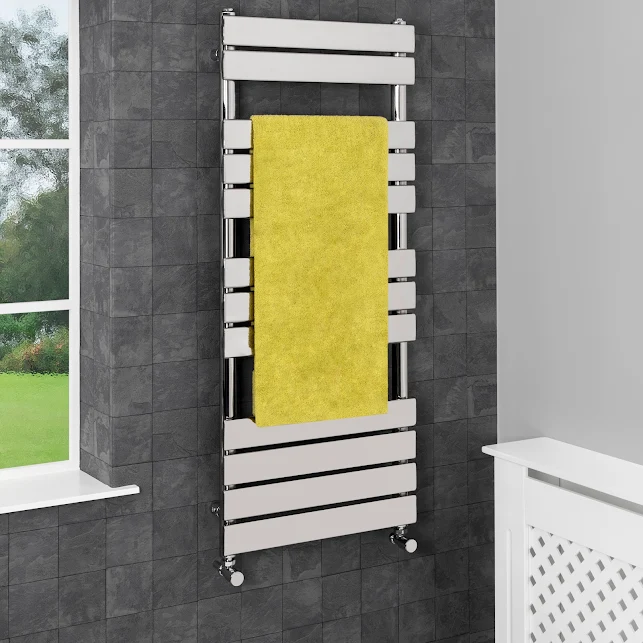Featuring a modern chrome finish and an ultra-sleek Flat panel design, this heated towel rail will look fantastic alongside contemporary décor in the bathroom. Crafted from the highest quality steel which is finished in a striking polish chrome, this is a super effective heating solution which can be effortlessly mounted on your walls – meaning it won’t take up floor space which is great for those who have smaller bathrooms. This heated towel rail runs off the central heating system which means it is installed in the same way that a standard radiator is connected. (Please be aware that radiator valves are required to use this towel rail but are not included)