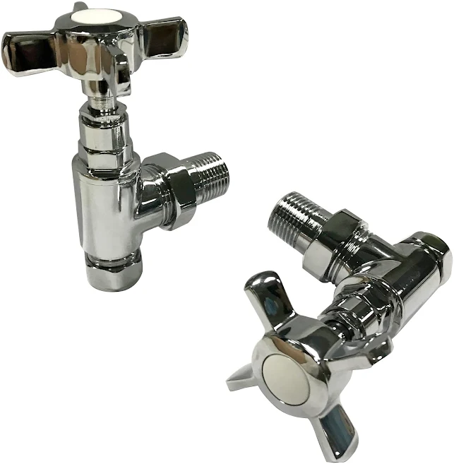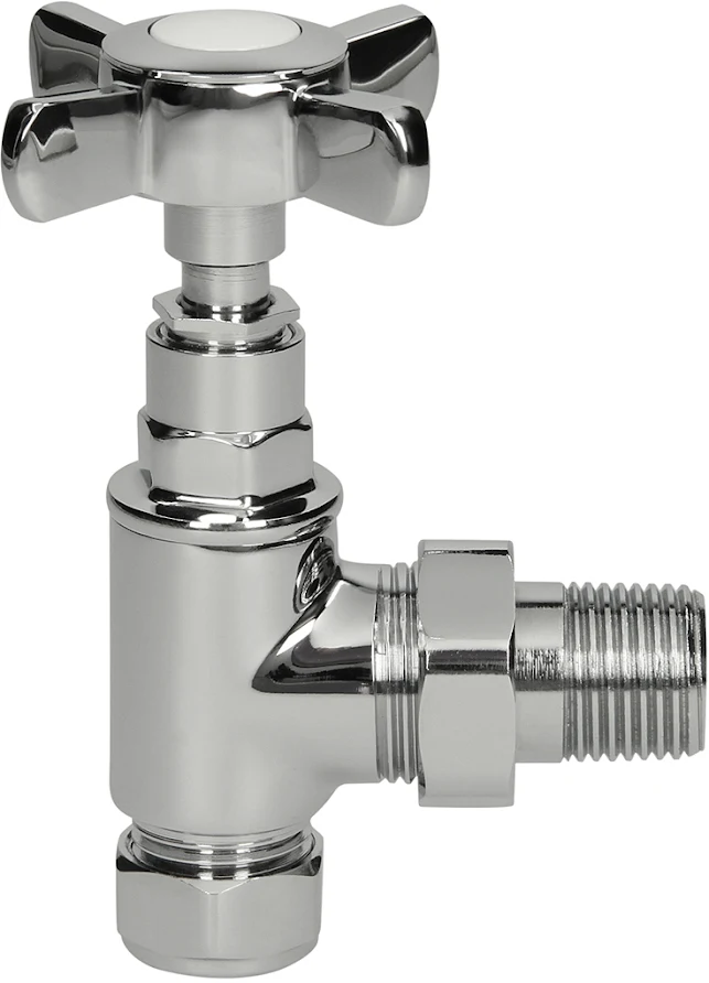 When it comes to radiator valves, the most traditional design is as you see here. Forget fussy thermostat valves: these are as simple as turning a tap. Control the water flow and therefore the temperature of your bathroom with ease with these fresh and simple cross head angled valves.