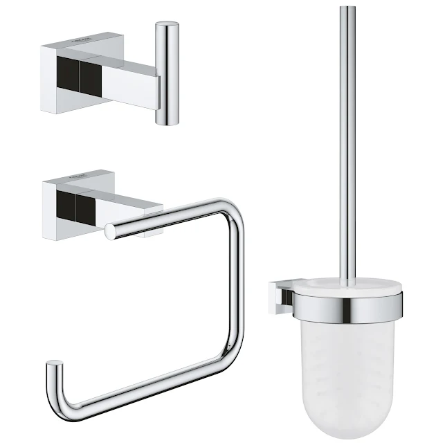 The Grohe Essentials Cube 3-in-1 bathroom accessories set includes a robe hook, toilet roll holder and toilet brush. This collection is bursting with minimalist appeal thanks to its clean lines, concealed fittings and rectangular escutcheons. Its StarLight chrome finish isn’t just timeless – it’s also highly durable and easy to clean for a shine that lasts. German-engineered and made from high-quality materials, these items come with a reassuring 5-year guarantee.