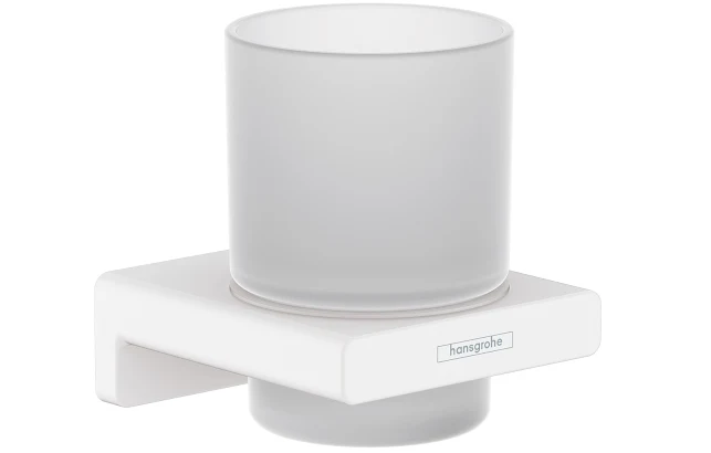 The AddStoris toothbrush tumbler from hansgrohe adds visual and functional flair to the bathroom. The wall-mounted frosted glass tumbler adds a hint of luxury to the bathroom, while also tidying up the wash basin. The modern and minimalist design wows users with its distinct, bold style. It goes really well with geometric bathroom taps, such as the hansgrohe Metropol range.