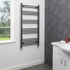 Dual Fuel Anthracite Heated Towel Rail – 1200 X 600mm Flat Thermostatic
