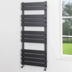 Dual Fuel Anthracite Heated Towel Rail – 1200 X 450mm Flat Thermostatic