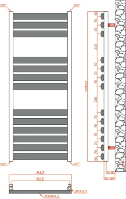Towelrads Dorney Heated Towel Rail – Anthracite 1200 X 500mm
