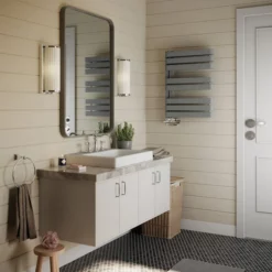 Stylish but practical, the towel rail can be wired within minutes. Its miniature front-facing LED panel is pre-fitted for quick installation. The cable cleverly runs from the bottom right mounting bracket, so it can be channeled into or routed down the wall depending on your preference.